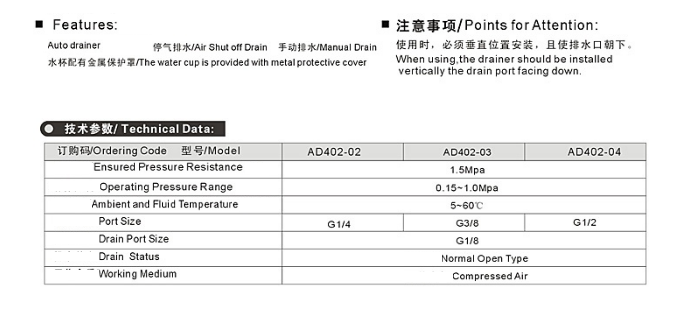 The AD402/600 series auto drain valve automatically discharges drainage. It...