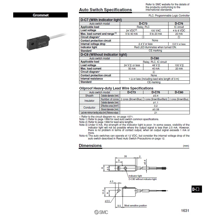 Đại lý phân phối sản phẩm cảm biến SMC D-C73, cảm biến SMC D-C76, sensor D-C80 thương hiệu SMC – JAPAN