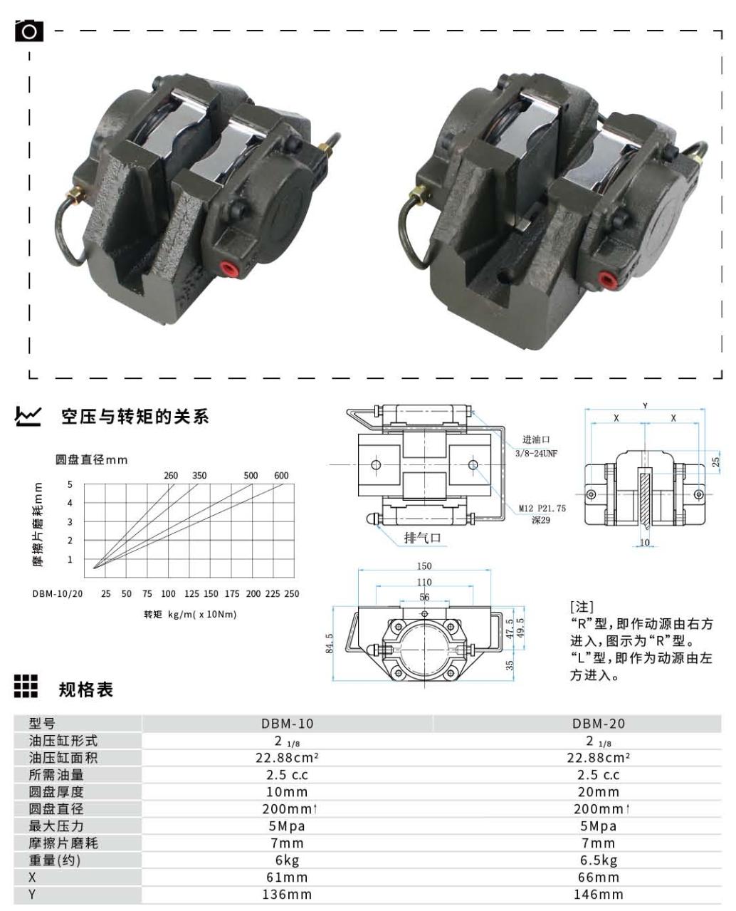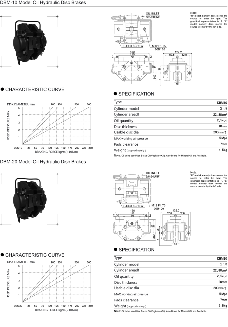 Thông số kỹ thuật sản phẩm phanh thủy lực DBM-10 DMB-20