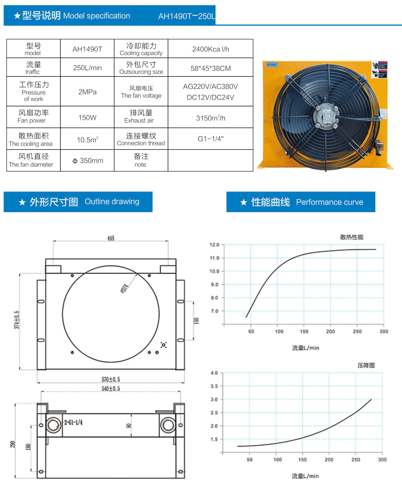 Ứng dụng quạt làm mát dầu thủy lực AH1490T-CA: