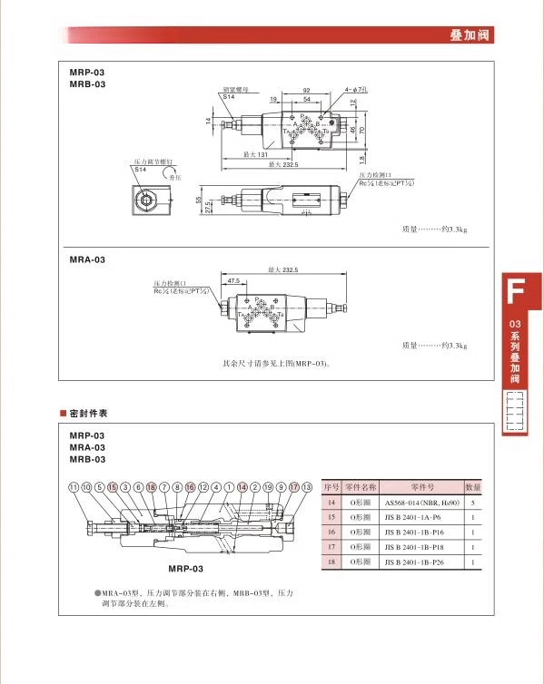 + Các loại van: MRB -03, MRA -03, MRP-03.