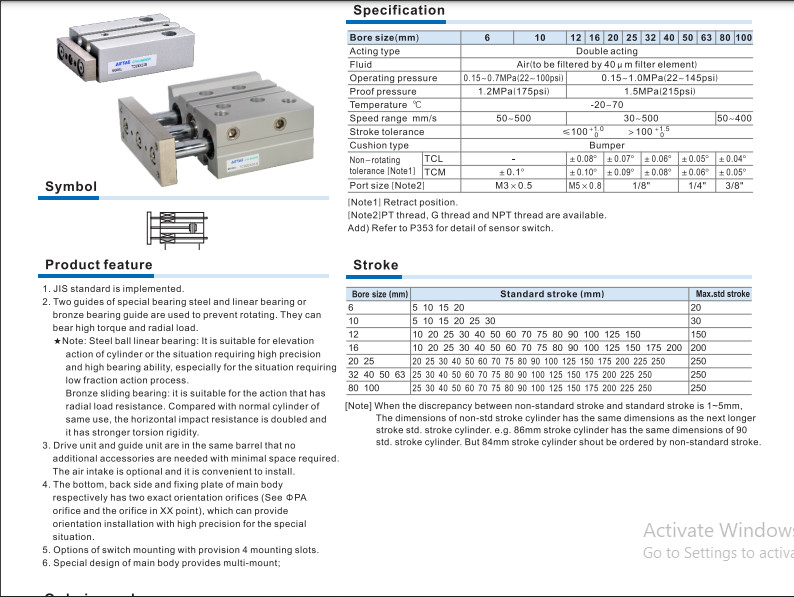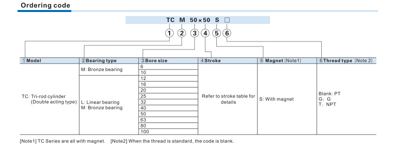 THÔNG SỐ KĨ THUẬT XI LANH KHÍ NÉN AIRTAC TCM Series