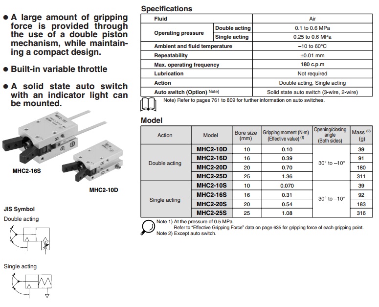 -Thông số kỹ thuật của xi lanh Tay kẹp hơi MHC: