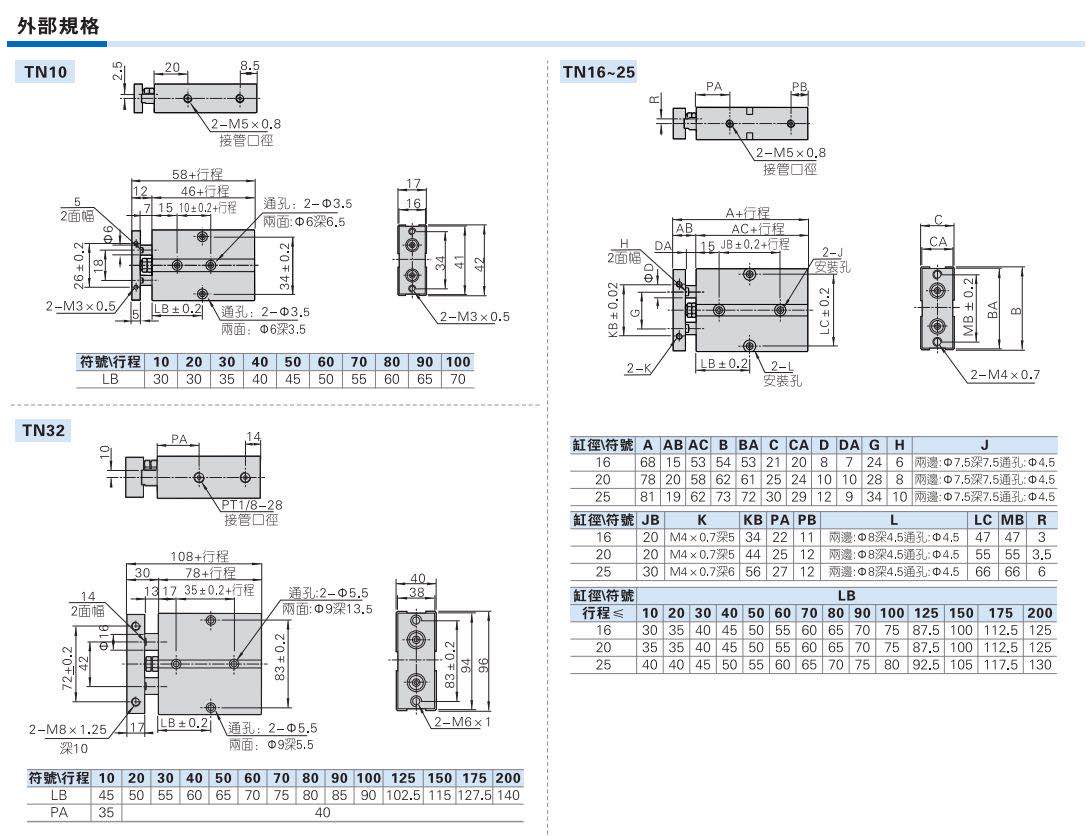 THÔNG SỐ KĨ THUẬT XI LANH KHÍ NÉN TN